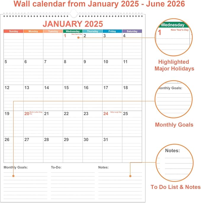 - 2025-2026 CALENDAR - 18 months desk calendar run from January 2025 to June 2026, the size of this 2025-2026 calendar is 22" x 17", focus on easy and efficient planning, scheduling and tracking for a manageable life.