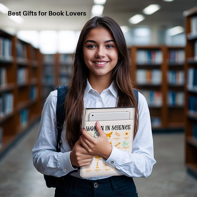 Book Themed Gifts Waterproof Book Sleeve Book Pouch Funny Reading Gifts Science Teacher Gifts for Women Her Book Covers for Paperbacks Book Accessories Book Protector with Zipper and Front Pocket