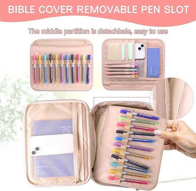 - Bible Case Bag for Women:A convenient handle makes it easy to just grab and go, there is a detachable shoulder strap for you to carry on your shoulder. You can carry it to churches, libraries, study rooms at any time for your Bible study, worship, or pilgrimage