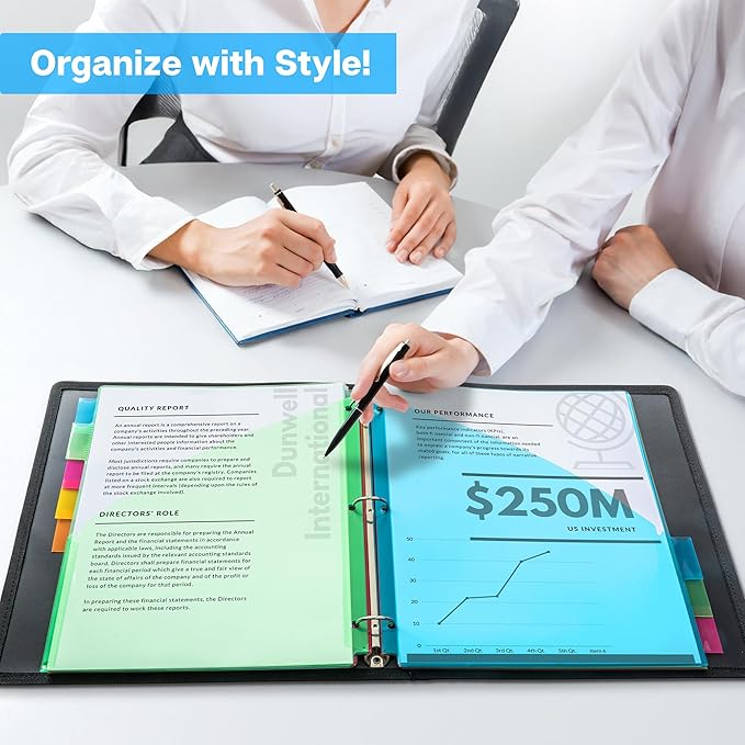 - Stay Organized: Brightly colored dividers with pockets, Includes tab inserts. 3-hole divider pocket can store letter-size 8.5x11" paper, 2-sided pockets, 5 tabbed binder dividers, folder separators.