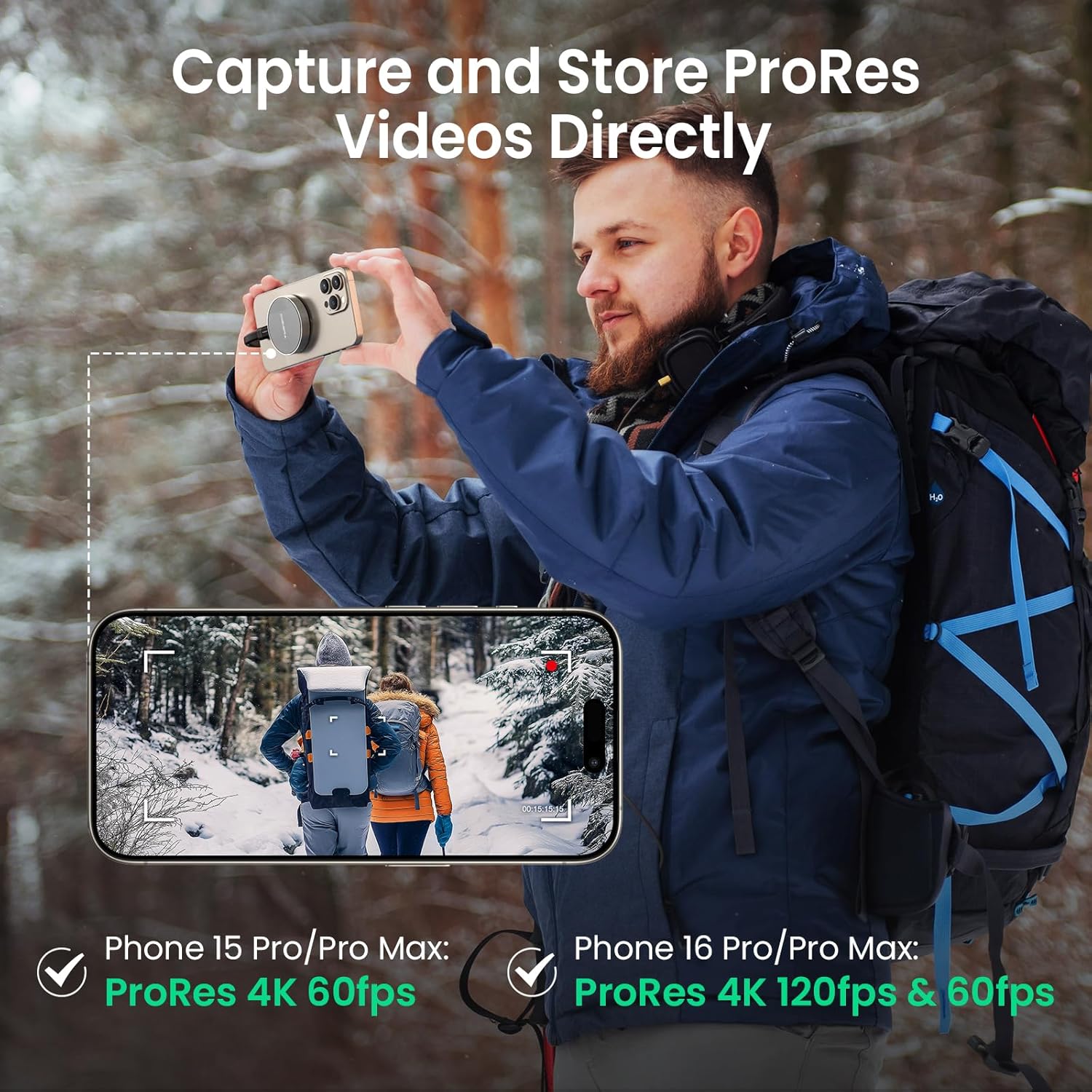 - Capture and Store ProRes Videos Directly: For iPhone 15 Pro/Pro Max or iPhone 16 Pro/Pro Max users, this external SSD is a game-changer. You can record 4K 60p ProRes or 4K 120p ProRes videos directly onto the drive, freeing up space on your phone and ensuring your high-res content is securely stored. It’s ideal for mobile filmmakers or photography enthusiasts looking for smooth, uninterrupted recording