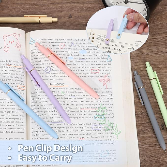 - PREMIUM QUALITY AND VIBRANT COLORED PENS: The Whole set includes a 6-pack of colorful gel pens, providing a fun and colorful way to add variety to your writing and drawing tasks.Ideal for everyday use like note-taking, journaling, and drawing at home, school, and office