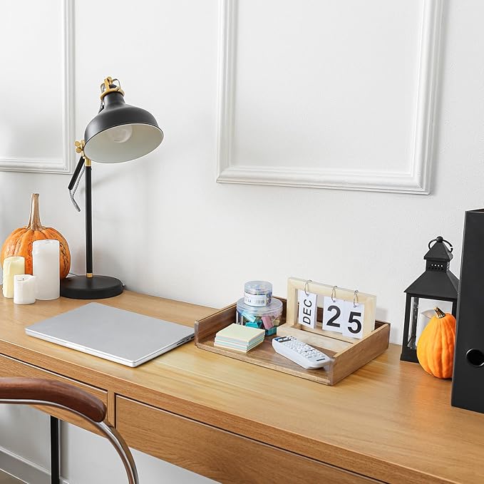 - Simple design & compact size: The wooden desk tray measures 13”x9.5"x2.36", which is simple and stylish, and adds a touch of sophistication to your desk. It can blend seamlessly with office or home decor, enhancing the overall beauty of your work and home space. (It also comes with 4 anti-scratch pads at the bottom)