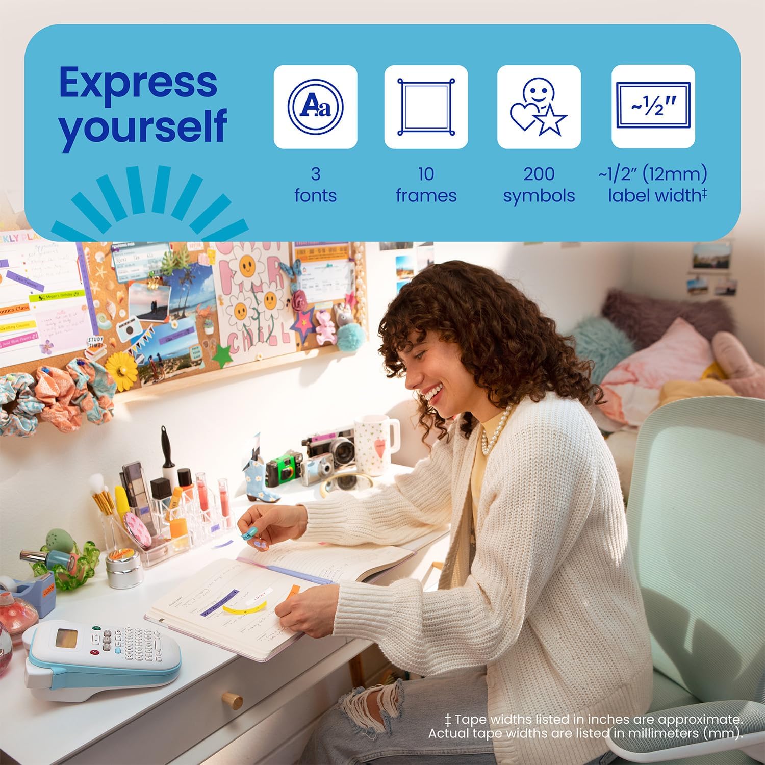 - EXPRESSIVE OPTIONS: Pre-loaded with 3 fonts in 6 font styles including underline and italic, 10 frames, 200 symbols; prints up to two lines of text with a combined height of 7mm. per label; create colorful unique messages to apply almost anywhere