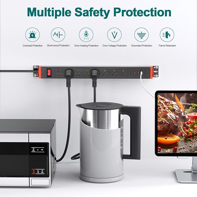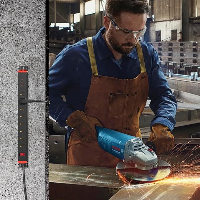 - 【Heavy Duty Power Strip】8-Outlet metal power strip has built-in 1200J surge protector MOV module, protect your electrical appliances from surges, lightning strikes. Crafted from durable metal housing and flame-retardant plastic panels, great for using in harsh environment like workshop, jobsite, garage. Making it a reliable choice for your power needs.