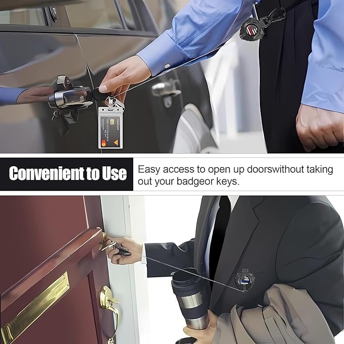 - 【EASY TO ACCESS】:bolimoss retractable badge holder clip steel rope is 31.5 inches, which is longer than ordinary models .more than enough to reach comfortably as far as your arm can reach. making it easy to open the door without removing the badge or key.