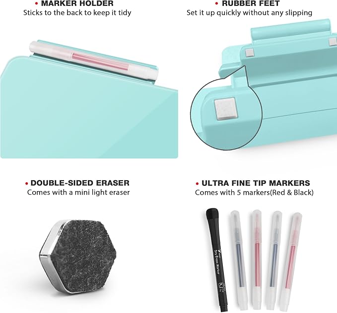 - Ideal Giving: The board, measures 8 x 6 Inches and comes with 5 markers, a double-sided eraser and an adhesive marker holder, it is a perfect present for coworkers and friends on a holiday like Christmas
