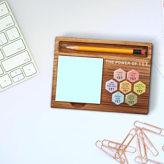 vizuzi The Power of Yet Mental Health Sticky Note Holder, Therapy Office Decor, DBT Growth Mindset Gifts for School Counselor Women Men Psychologist Therapist Self-Stick Note Pad Holders ZSS43