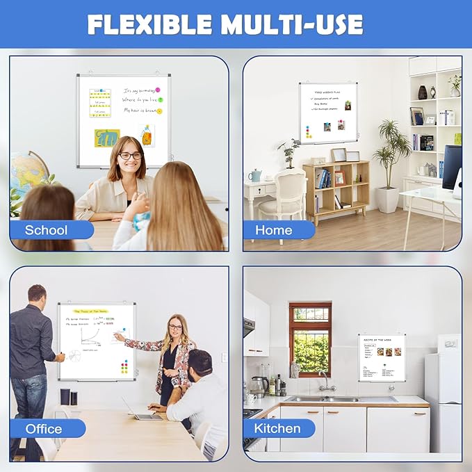 - 【Multiple Uses】: Package include 4 magnetic dry erase markers (include 4 color), 8 magnets, 1 movable tray, 1 dry eraser. WALGLASS Magnetic dry erase board is a good choice for home, school, office, small group instruction, kitchen, stores, dormitory and classroom etc. Perfect for using magnets to pin notes, messages, pictures, memos, calendars and more, without paper wasting.