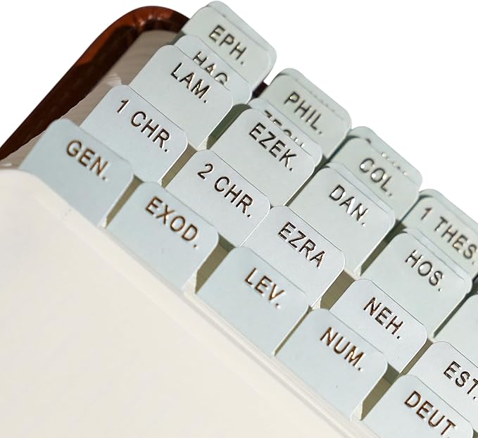 - Laminated & Durable: Each tab is laminated to remain tear-proof and clear for readability; Tabs are made to be thin, yet durable and will not make your Bible feel bulky.