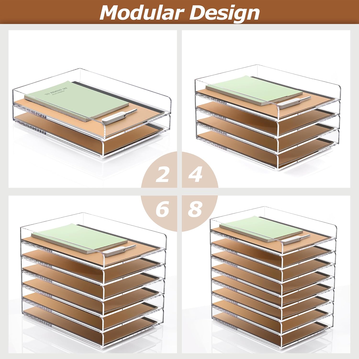 - 【 Acrylic Countertop Organizers Tray】: Contains 2PCS 1 Tier Vertical Tray , Stake any Layer Together in A Second, Great for Holding Letter/A4 Size Paper, Folders, Stationary, Desk Accessories Tray.