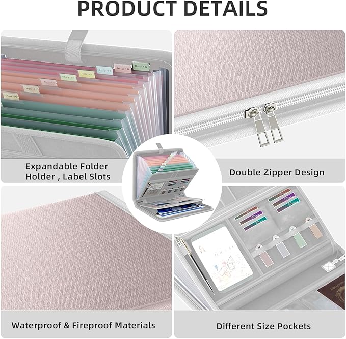 - Unique Functional Design - Our accordion file folder organizer is equipped with double zippers for smooth access and closure, you can bid farewell to concerns about misplacing crucial papers. Colorful labels for classification, It allows you to quickly classify your files and quickly find the files you need when using it. Fireproof expandable file folder organizer ensures that each file is easy to identify.