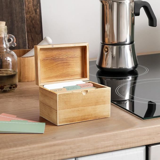 - WIDE APPLICATION: Using an index card box is a great way to organize index cards, recipes, class note cards, addresses, passwords, writing notes, coupons, receipts, flashcards, etc. It is perfect for home or office