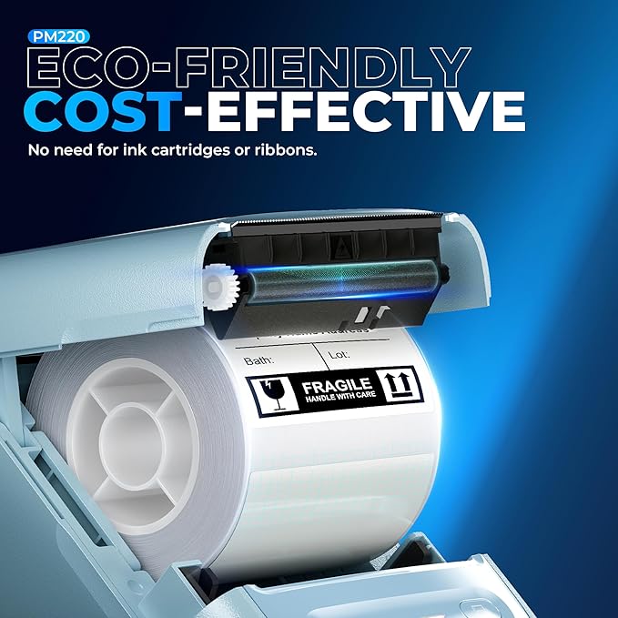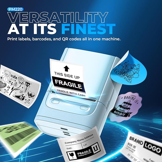 - Powerful APP- The PM220 label maker machine with tape comes with label templates and can set up your own templates. Please do not tear or destruct the green sticker on the back of the label strip, otherwise it will affect the printing effect. This label printer allows you to customize and format labels, supporting various features such as QR codes, barcode labels, tables, materials, time, figures, text, icons. This label maker machine with tape APP included more than 90 +Fonts, 14+ Languages, 450+ Materials