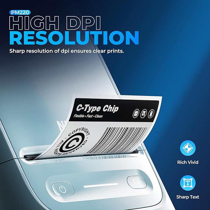 - Portable- PM220 label maker machine with tape compatible with smartphone & PC. Easily connect label printer to your smartphone in just 5 seconds for fast and convenient printing, label printer achieves convenient, smooth & fasts printing. Mini compact design, you can bring this portable label maker machine with tape to anywhere.(Note: charging adapter not included, not suitable for fast charging adapter.)