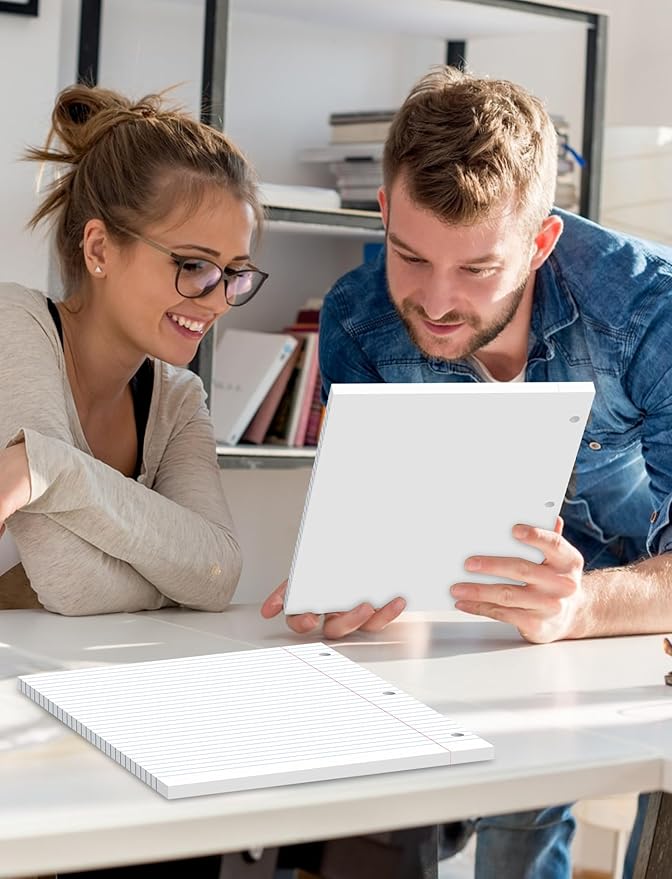 - 【High Quality Paper】- The 3-hole punched lined paper measures 8.5’’ x 11’’, made of 70gsm paper material, thicker than average loose leaf paper pads. Pads of paper smooth, premium-weight paper allows your ballpoints and ink gel pens to glide across the page. Loose leaf binder paper 8.5 x 11 wide ruled writing stays on the surface and resists ink bleeding and show-through. White paper pads each pad has 100 sheets, with 2 pads per pack.