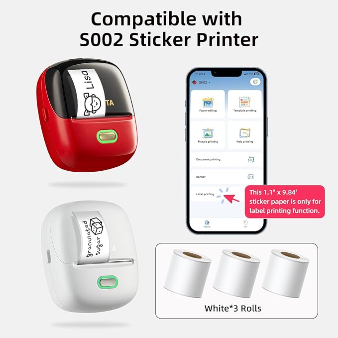 - Clear Prints: Experience sharp, high-quality prints with crisp black text that’s easy to read and scan; Compatible with the label printing function of the ORGSTA S002 portable thermal sticker printer