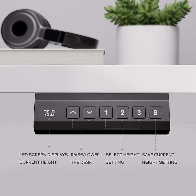 - Intuitive Control & Quiet Operation: Effortlessly adjust your desk height with our intuitive control panel, featuring 3 memory presets for personalized settings. Operate in tranquility with our ultra-quiet motor at just 45 dB, ensuring a distraction-free environment for optimal focus and productivity