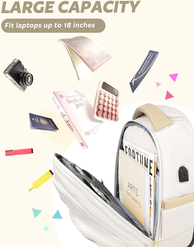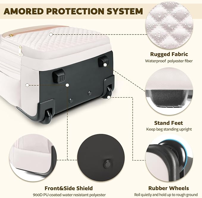 Rolling Backpack For Adults With Wheels, 40L Wheeled Backpack For Women, Travel Roller Backpack, Carry On Luggage, Rolling Bag, Beige