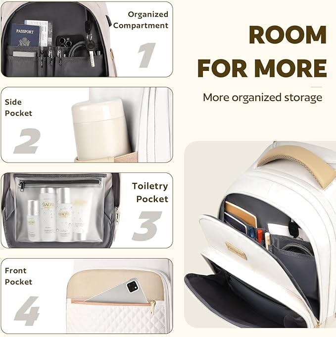 - Detail Features: The roller backpack's front compartment includes a zippered waterproof cosmetic bag. The backpack's dimensions meet the size requirements for carry-on luggage for most airlines, and it's also well-suited to fit in overhead bins or under the seat. It features a TSA-friendly design that unfolds 180 degrees for swift passage through airport security. The backpack is equipped with lockable metal zippers for added theft protection