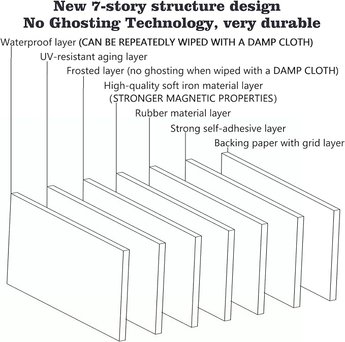 - 【VERY EASY TO CUT & INSTALL】This magnetic chalkboard is made of a backing paper printed with grid lines for guiding straight cuts, You can cut it at any shape, Then just simply peel and stick, Turn any smooth and non-texture surface into a large magnet receptive board. The stronger the magnetism of the magnet, the stronger the attached will be.