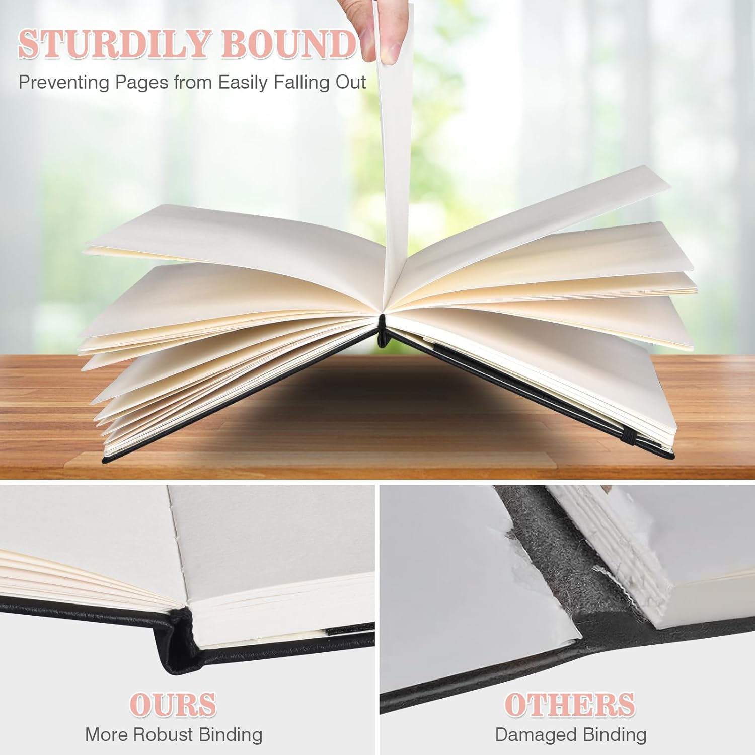 - 【Hardcover Faux Leather Cover】Crafted with a luxurious faux leather cover, these sketchbook journals are not only animal-friendly but also provide a pleasant tactile experience. The hardcover of work notebooks ensures your entries are well-protected, making these leather sketchbook treasured keepsakes. Designed to lay flat at 180°, they facilitate effortless writing.