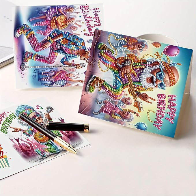 6 Pieces Diamond Art Painted Greeting Cards, Trendy Music Elderly 5D DIY Special Shape Diamond Card Creative Gifts, Christmas Thanksgiving Greeting Cards Congratulation