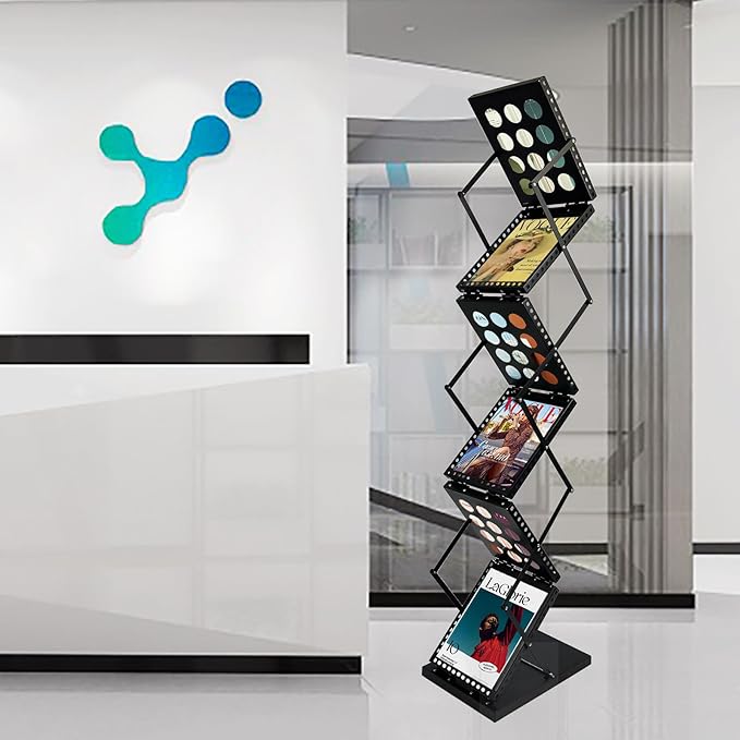 - Simple Installation:The pop-up design allows you to set up and fold the magazine display rack in seconds for easy storage or transportation. Simply pull up the brochure rack and snap on the bottom latch, it's easy and effortless, our literature racks save space and can even be used multiple times.