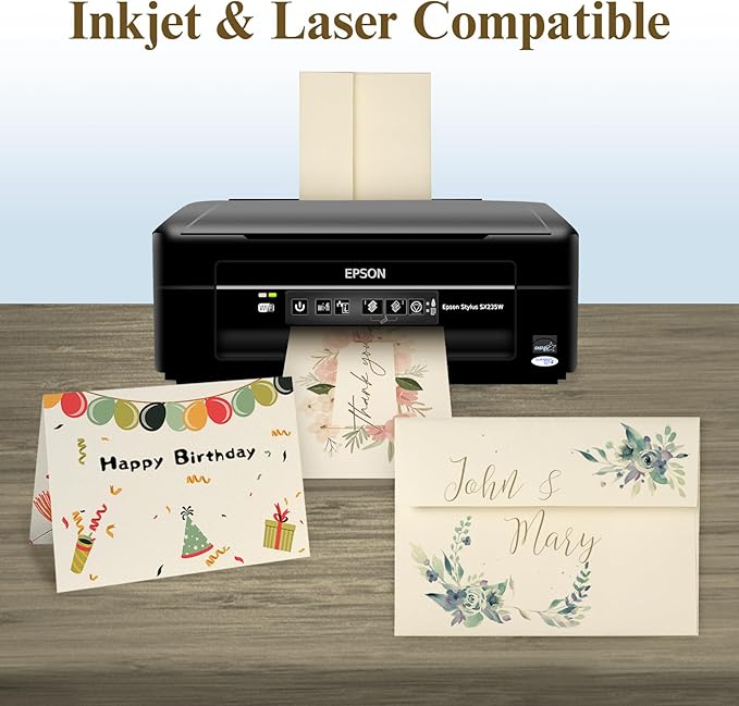 - Print, Stamp & Write Well: Our blank cards with envelopes for card making are compatible with Inkjet & Laser Printers; easy to write on or stamp with the blank note cards and envelopes, smudge free—ideal for invitations and announcements