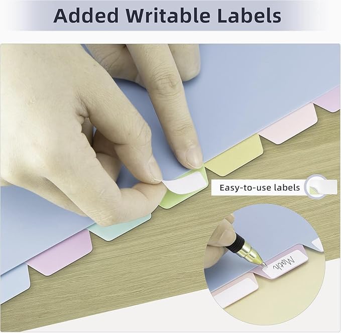 - Write & Erase Tabs – Label and relabel your dividers easily with write-on, wipe-off tabs, allowing for quick changes as your organizational needs evolve.Each set comes with 42 customizable labels