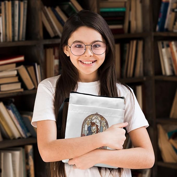 Tale As Old As Time Belle's Book Coffee Book Lover Book Sleeve, Book Covers with Zipper, Book Lovers, Book Pouch Kindle Protector, Gifts for Women Teacher Librarian Bookworm Bookish (White-B, Large)