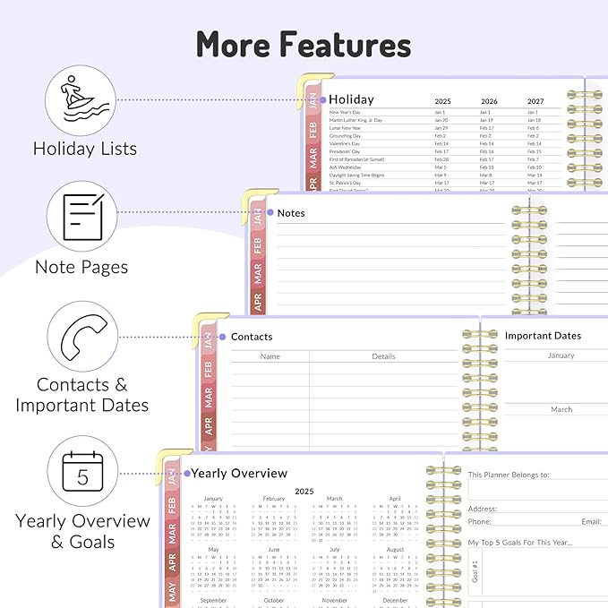 - Spacious Writing Space: Printed on 8.5" x 11" (as big as textbooks) quality paper, a day planner 2025-2026 has plenty of room to write assignments and track homework. Perfect size for use on your desk.