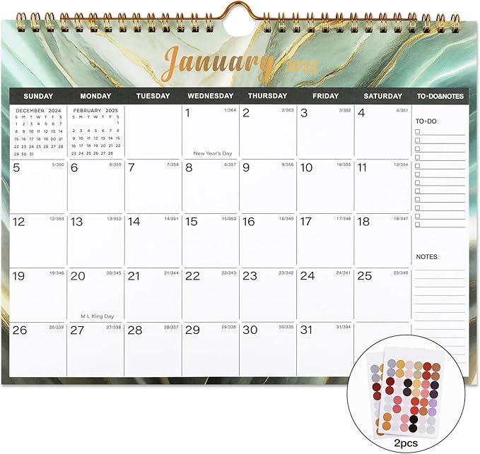 - MONTHLY OVERVIEW: With 18 months pages featuring 12 different color schemes, this 2025-2026 calendar's monthly overview page includes past and future monthly references, highlighted federal holidays that help remind you of important holidays and manage your life efficiently. And the grid includes Julian dates for long-term planning.