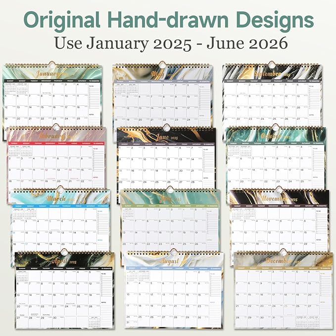 - MORE PRODUCTIVE: This 2025-2026 wall calendar is designed to simplify your life. 2025-2026 Wall Calendar Includes January 2025 to June 2026, the convenient and effective month view page planner will help you clearly organize each month of the year. Perfect for keeping track of your daily tasks, goals and yearly plans.