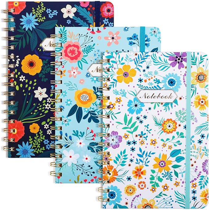 - Notebook Details: 3 pack A5 spiral notebooks. 8.4x5.6in 7mm lined Ruled pape, Strong twin-wire binding with elastic.
