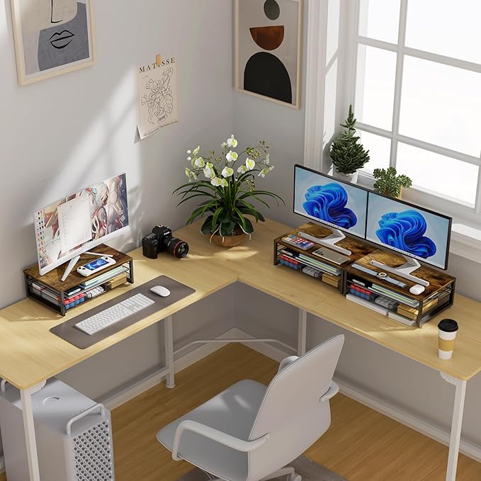 - 【50+ lbs Heavy-Duty Stability】: It features a reinforced steel frame with crossbars and wooden panels, ensuring the monitor stand remains stable without any wobbling. The non-slip pads not only maintain stability but also prevent scratches on your desk. It has been weight-tested for all-day reliability.
