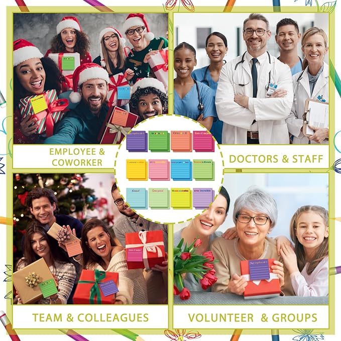 Yinder 24 Pcs Inspirational Sticky Notes with Lines Cute Motivational Sticky Notes Pad Employee Appreciation Gifts Bulk for Teacher Nurse Coworkers Office Supplies 3 x 3''(Spanish,Appreciation)
