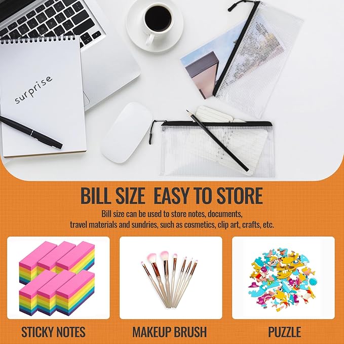 - Material Quality: Mesh zipper pouch bags are made of waterproof polyvinyl chloride PVC material, safe and durable, protecting files from moisture tough and durable, resistant to acid, not easy to tear