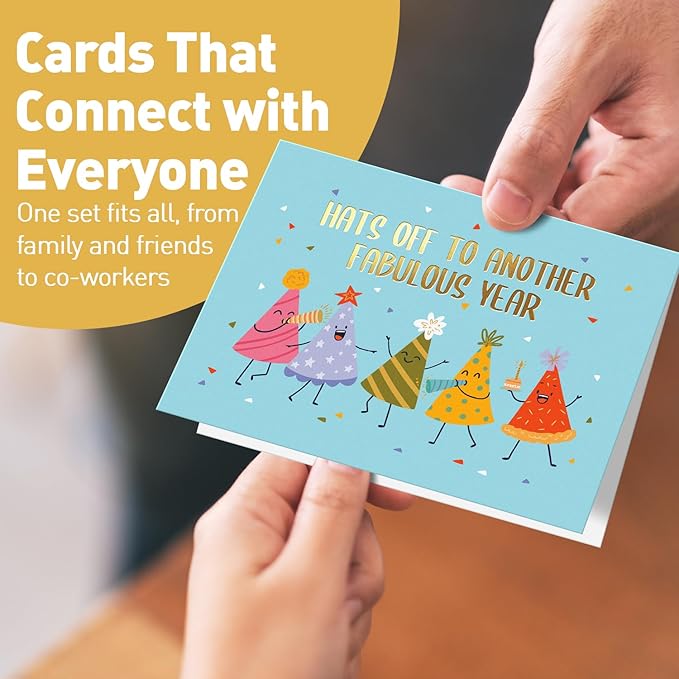 - Organized & On-Point –– Put a lid on card chaos with this birthday cards pack that comes with a handy storage box. Tailor your presentation to the celebration with 4 envelope colors to complement your birthday card pack selection. Whether it's a fancy affair or a casual party, you're all set to seal your card with style and a smile