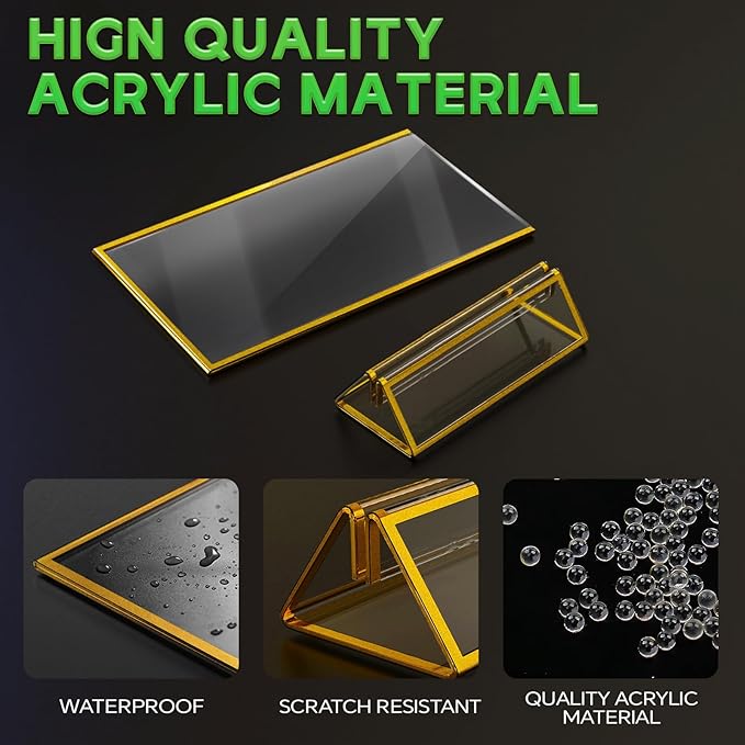 - 【Premium Acrylic Material 】 This 5X 7 sign stand is made of high quality acrylic , different from plastic material, very clear and durable, not easy to scratch cracked.Note:Gold Borders is made of gold pigments and powders, not metal, antioxidant more durable
