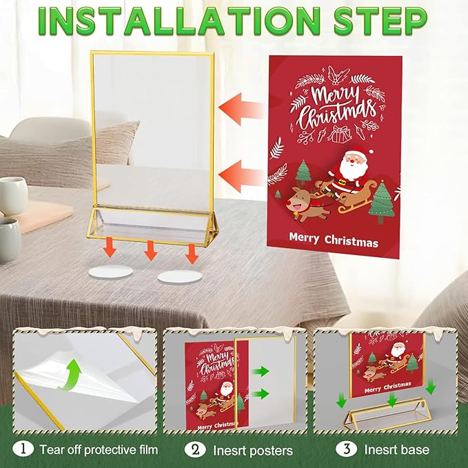 - 【Double-sided 5 x 7 Acrylic Sign Holder】This acrylic frames can hold two photos ,they can clearly display both sides. The gold frames are easy to replace the photo,is your best choice for photo frames,sign holder ,menu holder and wedding table number holders!