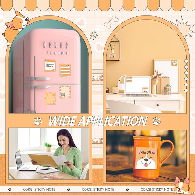 - Delightful Corgi Design: the cute dog sticky notes sport a charming and realistic design of these popular animals; Each sticky note features an intricate pattern that captures the distinctive characteristics of the corgi, from their shaggy fur to their gentle demeanor; This makes a pleasurable inclusion to the sticky note array of any animal enthusiast