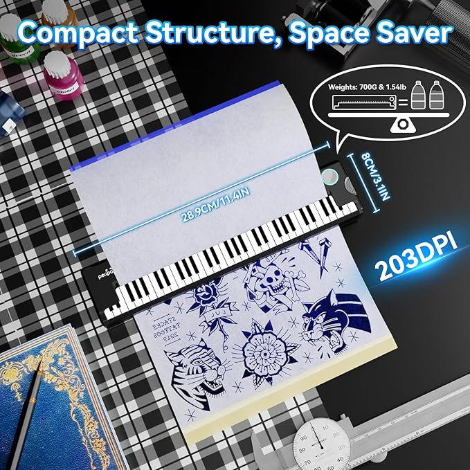 - Perfect for Professionals & Beginners: Revolutionize your tattooing process with precise, inkless thermal printing. The P90-Pino delivers clear, detailed stencil lines in seconds, empowering tattoo artists of all levels to create impressive, professional designs.