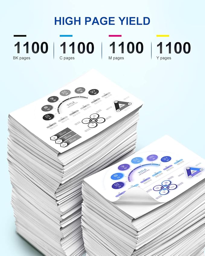 - High Page Yield: Up to 1100 pages per 812xl black remanufactured for epson 812 black ink cartridges, 1100 pages per 812 xl color ink cartridges, at 5% coverage of A4 Paper
