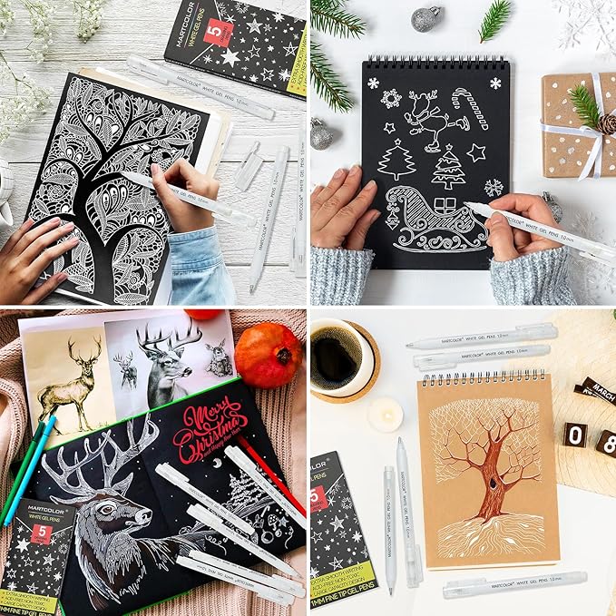 - Multi-Purpose: Writes on dark colored paper such as black paper, craft paper. White fine point gel pens for detail drawing sketching, illustration, card making, scrapbook and other projects. great for art-loving students, artists and beginners.