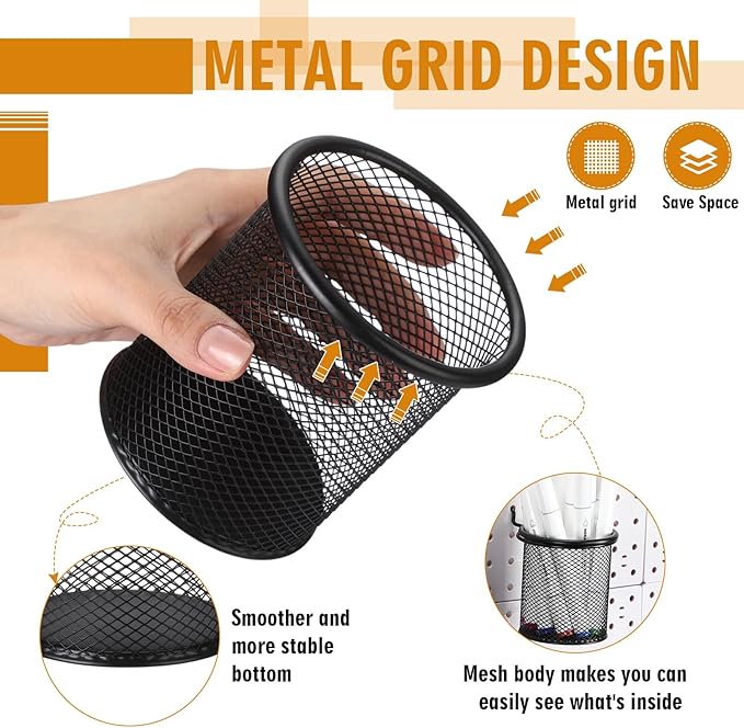 • Widely Applicable: the pencil cups for pegboard with rings allows you to store accessories, not only pens, pencils, rulers, erasers, paper clips, scissors and others, but also cosmetic brushes, lipstick and keys; It is suitable for families and offices applied by students, teachers and office workers to create an orderly and tidy office environment
