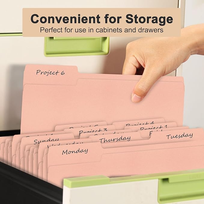 - 1/3 Cut Tab in Three Positions:Easy to categorize and sort through your files, saving you time and enhancing productivity.