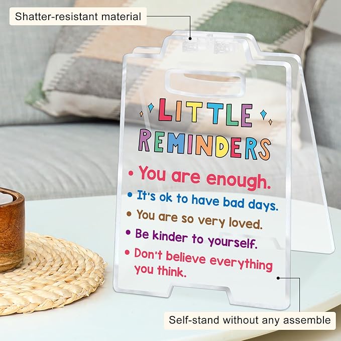 - Cute Stress Relief Positive Reminder Gift - 6.3"L x 3.9"W desk decor is made of sturdy ABS material with smooth surface, shatter-resistant and anti-scratch. Its clear color and uplifting messages make it suitable for any space, idea gift for friends, teachers ,colleagues, employees, caregivers, etc