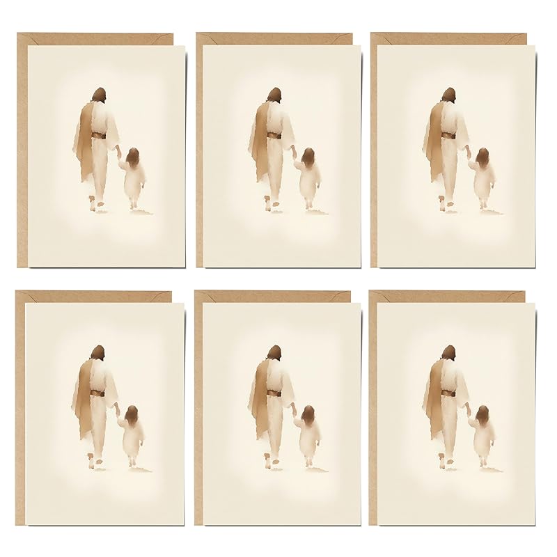 - 🎁🎄Set of 6 Christian Greeting Cards – The Way He Leads: This set includes six 5"x7" blank cards featuring the heartwarming artwork of Jesus walking hand-in-hand with a girl, inspired by the scripture, "I am with you always, even unto the end of the world" (Matthew 28:20). A meaningful way to share faith and encouragement.