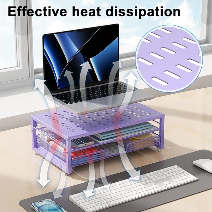 gianotter Computer Monitor Stand Riser, office organizer with Drawer, Office Organizers Storage for Classroom Office Supplies (Purple)